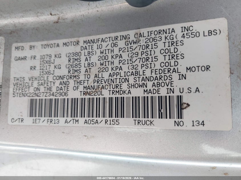 VIN: 5TENX22N27Z342906