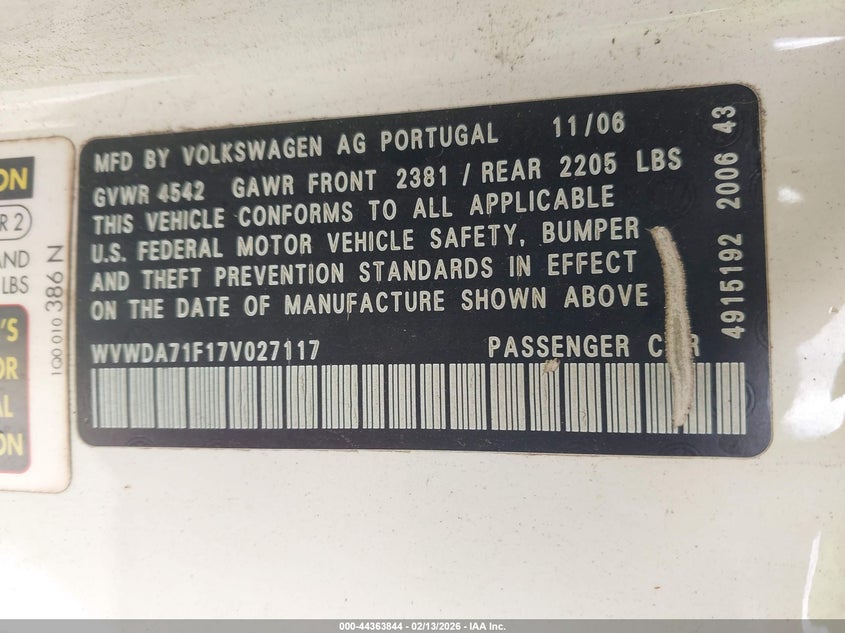 VIN: WVWDA71F17V027117