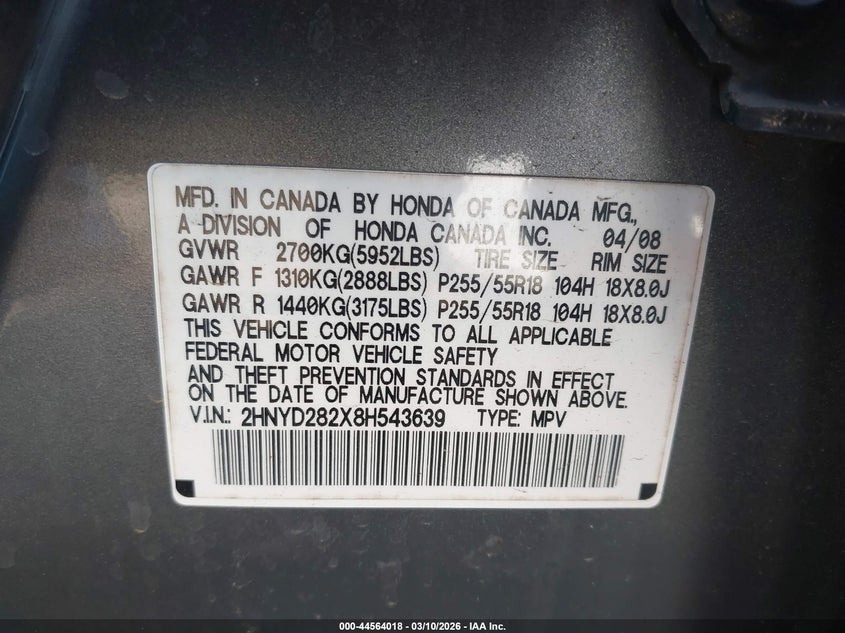 VIN: 2HNYD282X8H543639