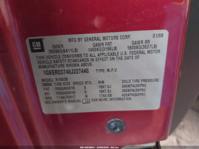 VIN: 1GKER33748J227448
