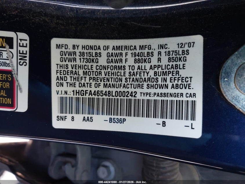 VIN: 1HGFA46548L000242