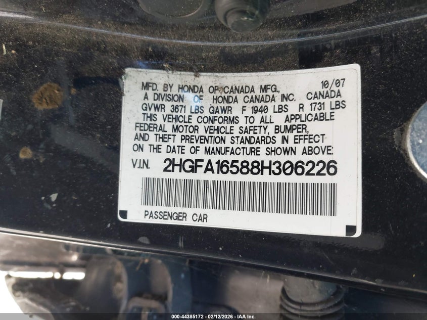 VIN: 2HGFA16588H306226