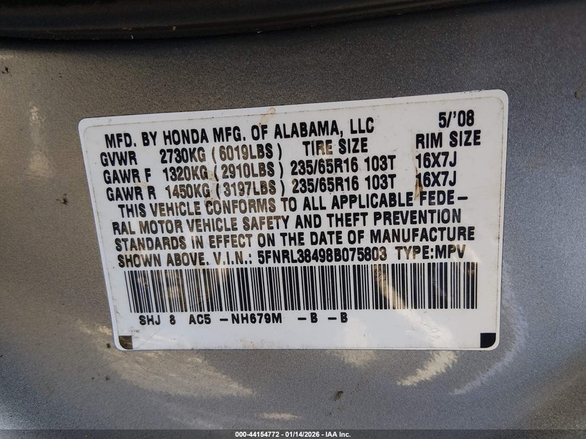 VIN: 5FNRL38498B075803