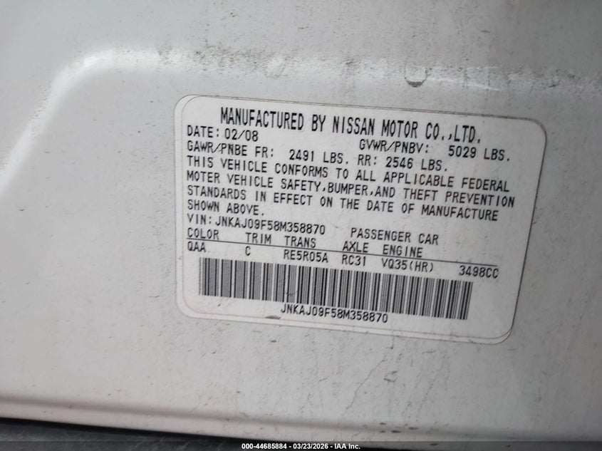 VIN: JNKAJ09F58M358870