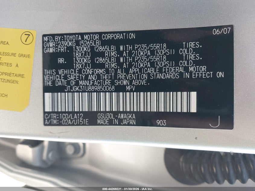 VIN: JTJGK31U889850068