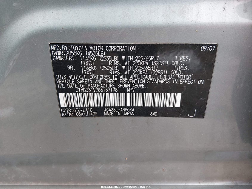 VIN: JTMBD31V785137198