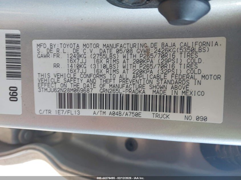 VIN: 3TMJU62N28M069687