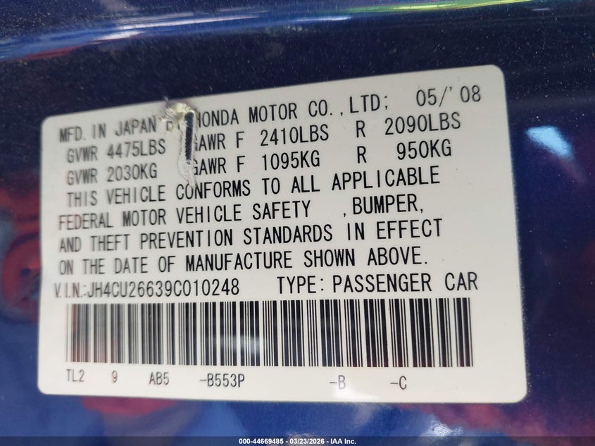 VIN: JH4CU26639C010248
