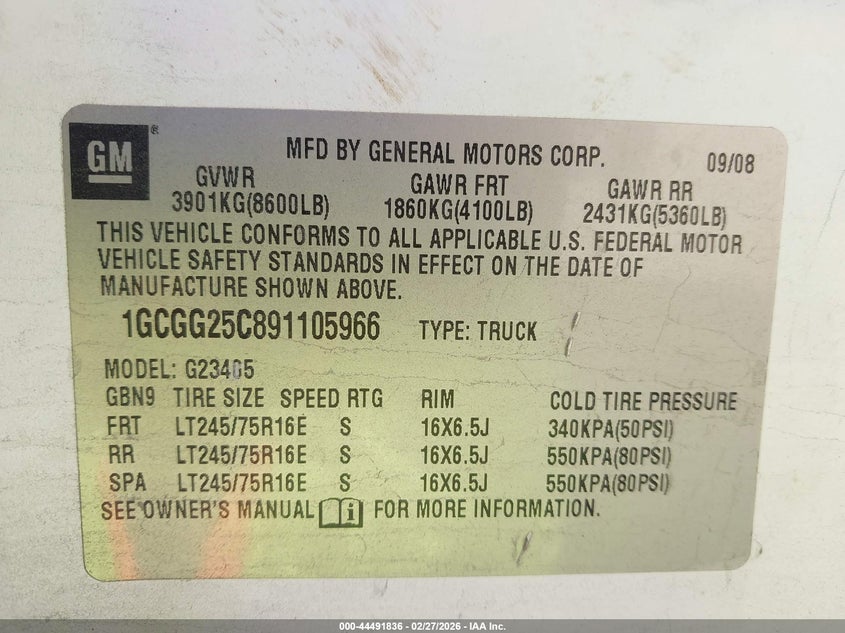 2009 CHEVROLET EXPRESS 2500 WORK VAN