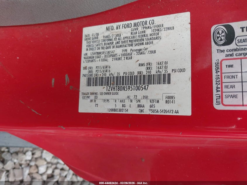 VIN: 1ZVHT80N595100547