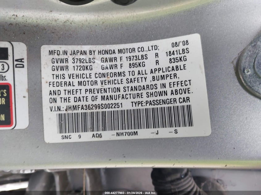 VIN: JHMFA36299S002251