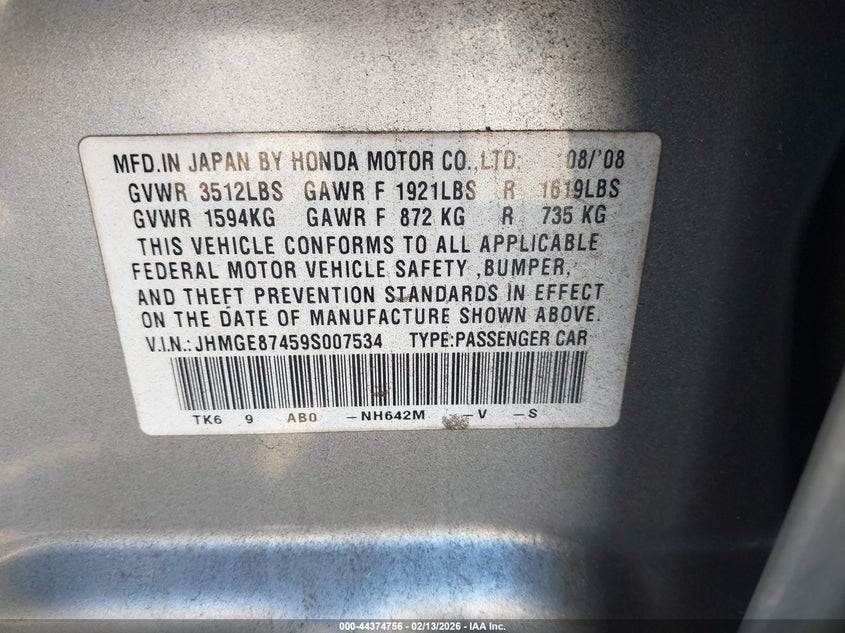 VIN: JHMGE87459S007534