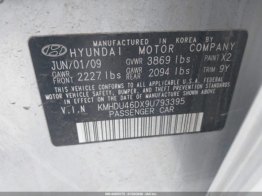 VIN: KMHDU46DX9U793395