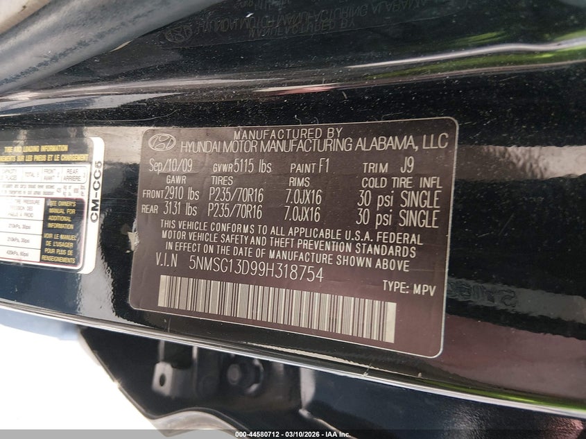 VIN: 5NMSG13D99H318754