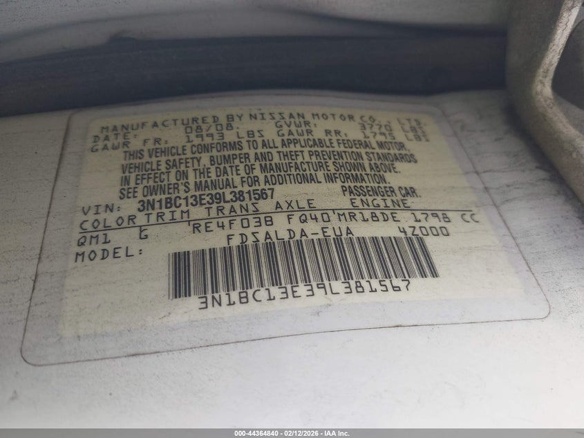 VIN: 3N1BC13E39L381567
