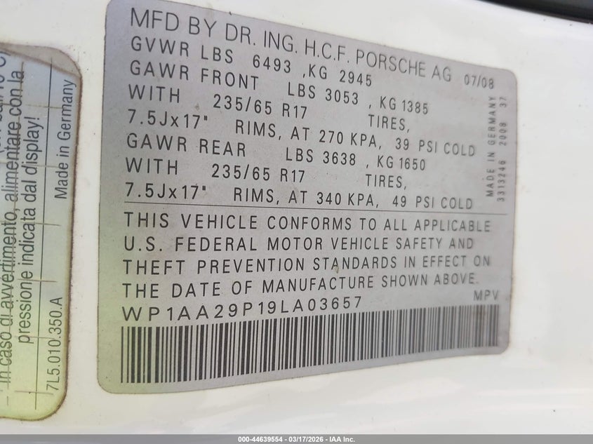 VIN: WP1AA29P19LA03657