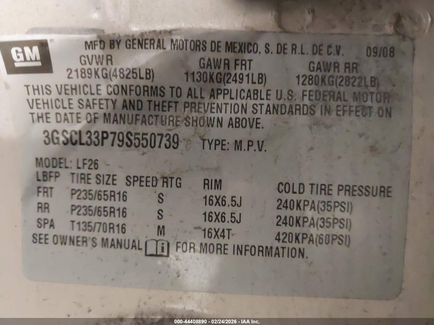 VIN: 3GSCL33P79S550739