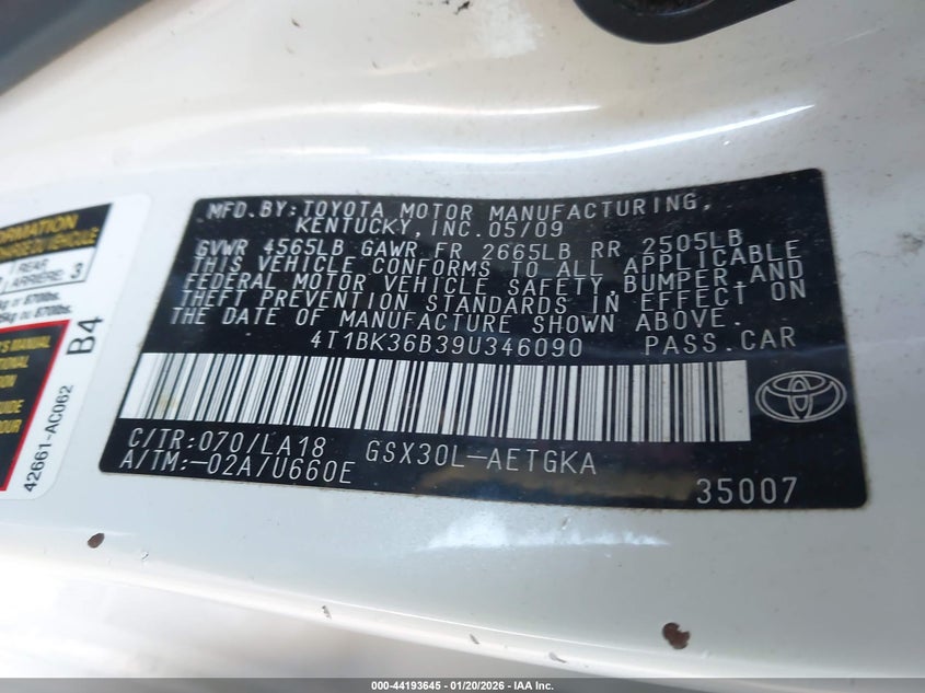 VIN: 4T1BK36B39U346090