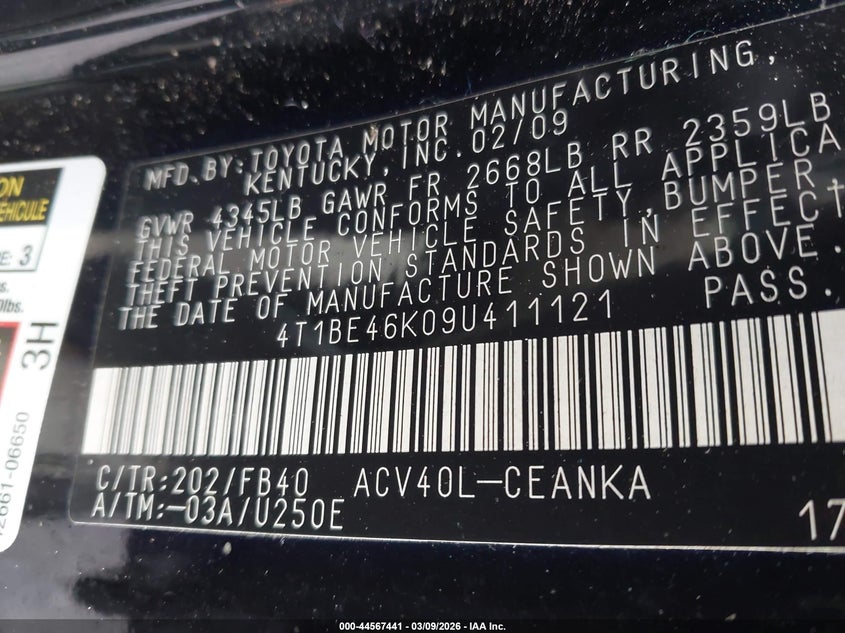 2009 TOYOTA CAMRY