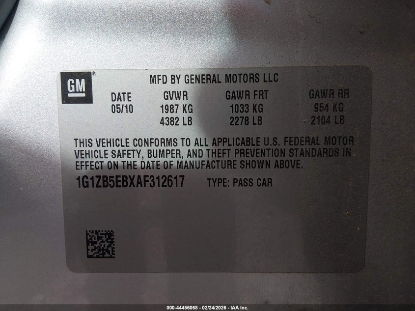 VIN: 1G1ZB5EBXAF312617