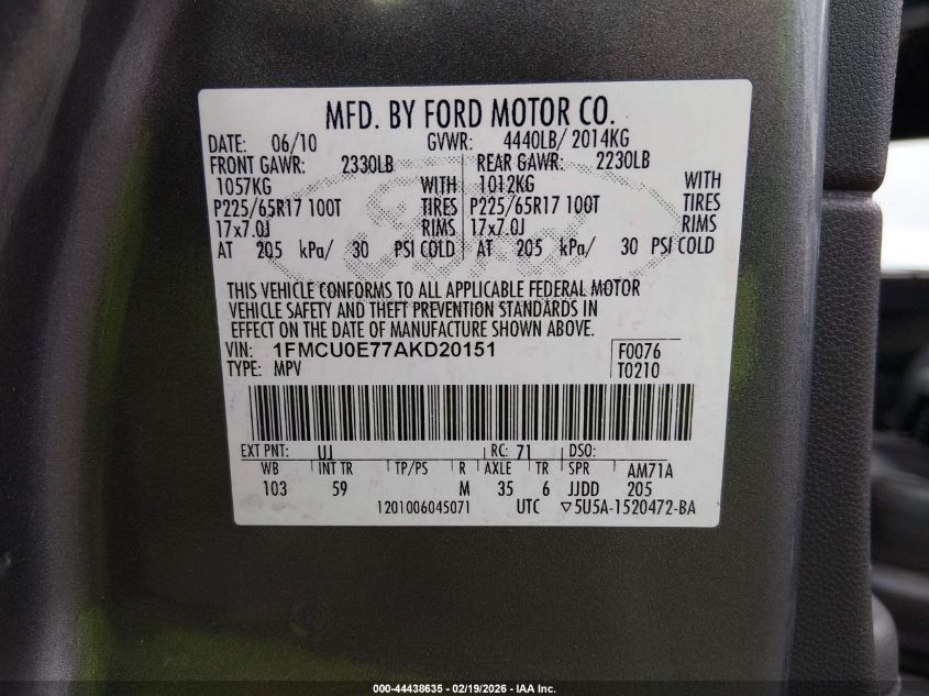 VIN: 1FMCU0E77AKD20151