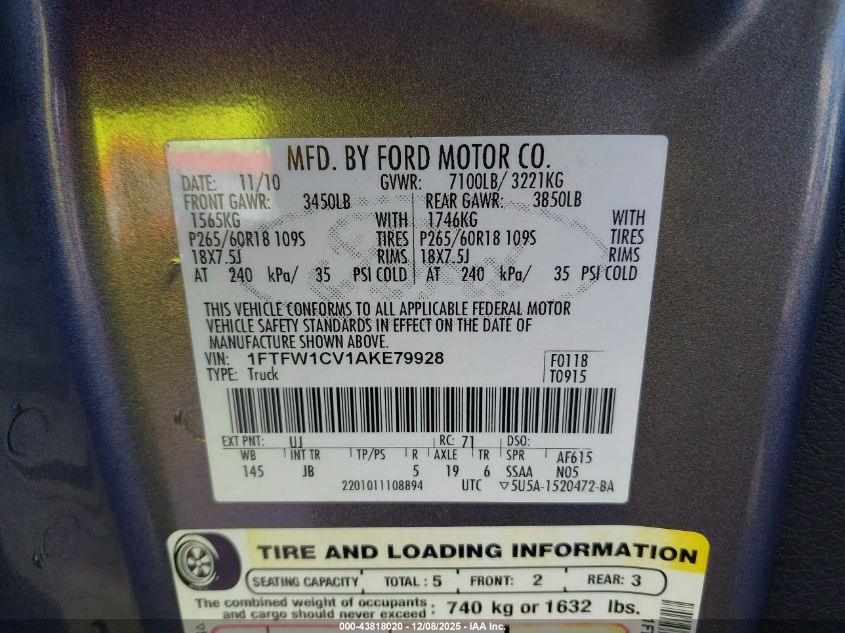 VIN: 1FTFW1CV1AKE79928