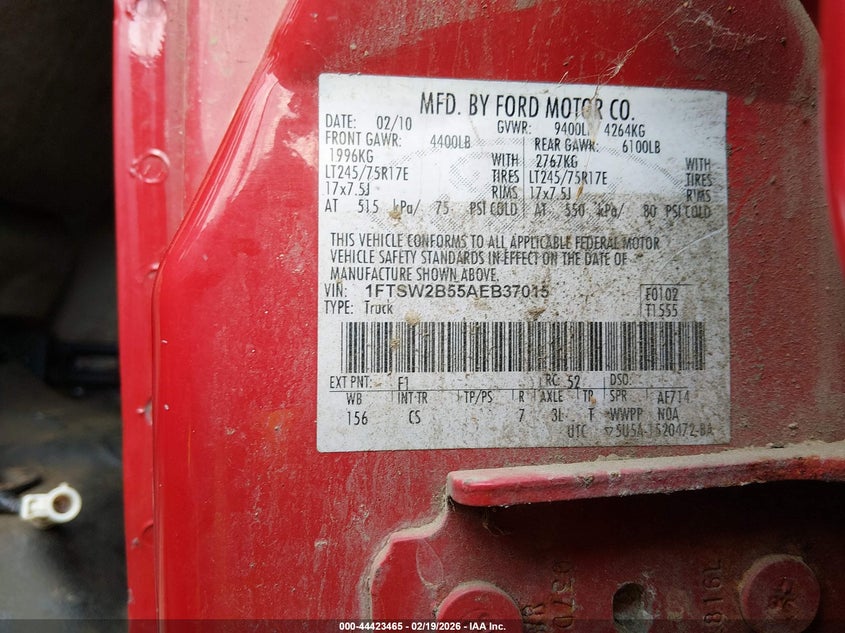 VIN: 1FTSW2B55AEB37015