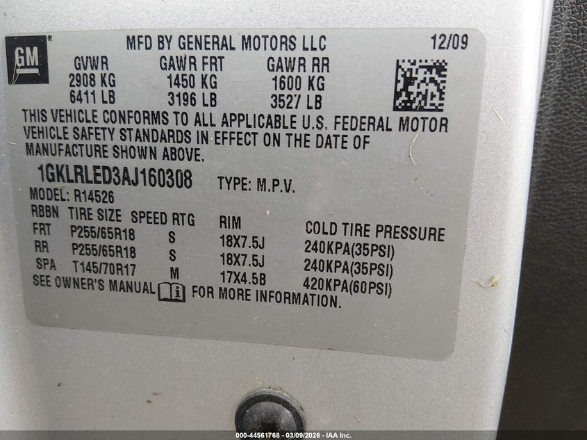 VIN: 1GKLRLED3AJ160308