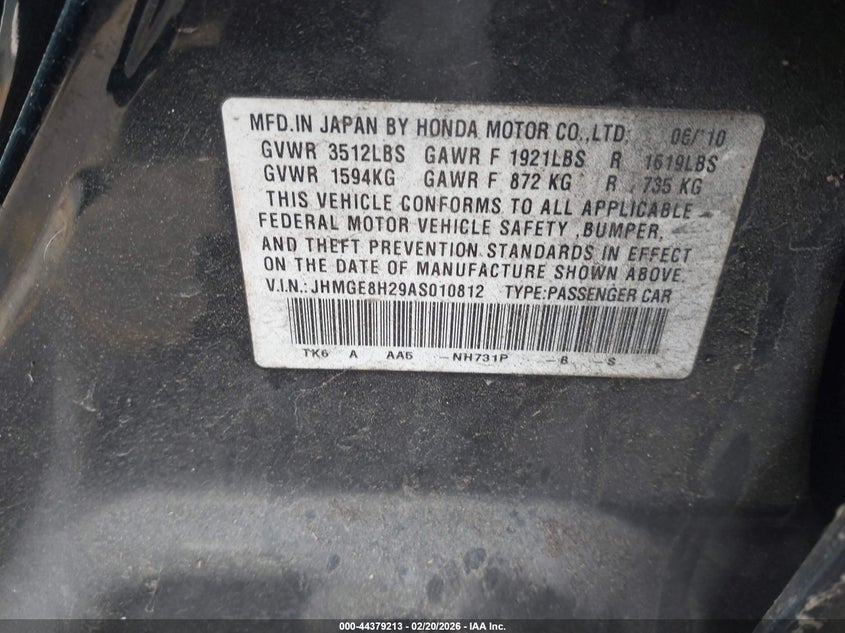 VIN: JHMGE8H29AS010812