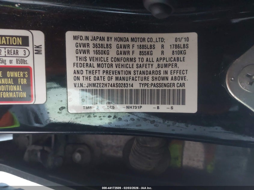 VIN: JHMZE2H74AS028314