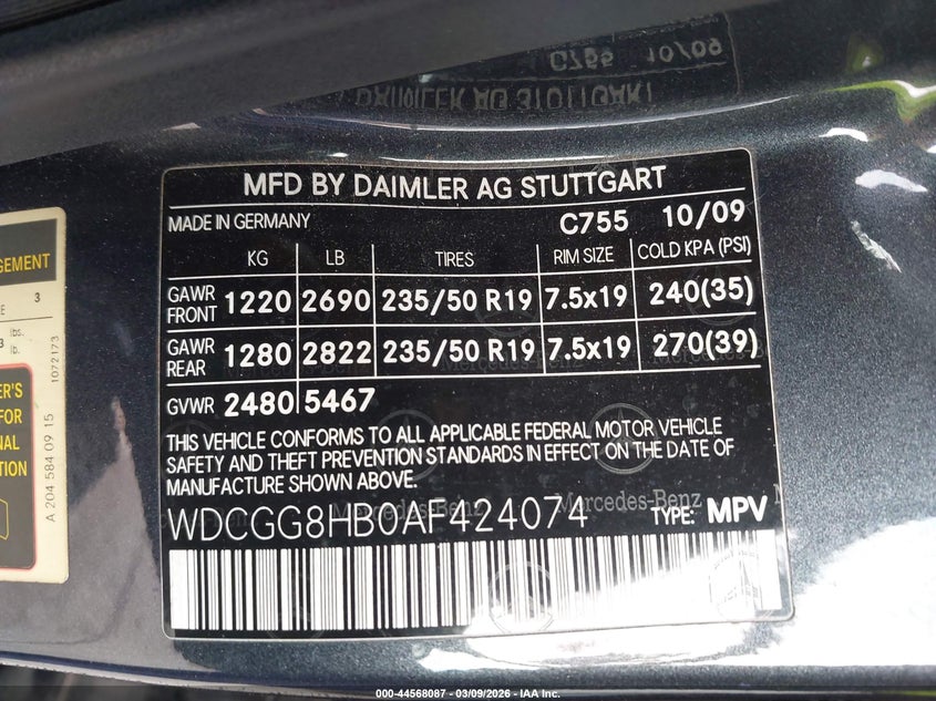 VIN: WDCGG8HB0AF424074