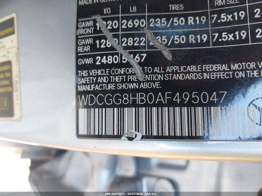 VIN: WDCGG8HB0AF495047