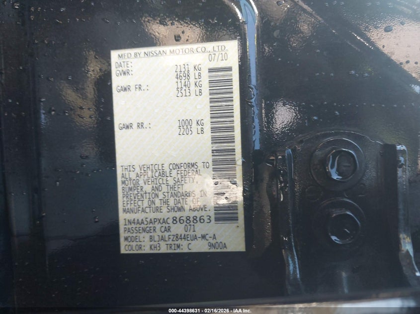VIN: 1N4AA5APXAC868863