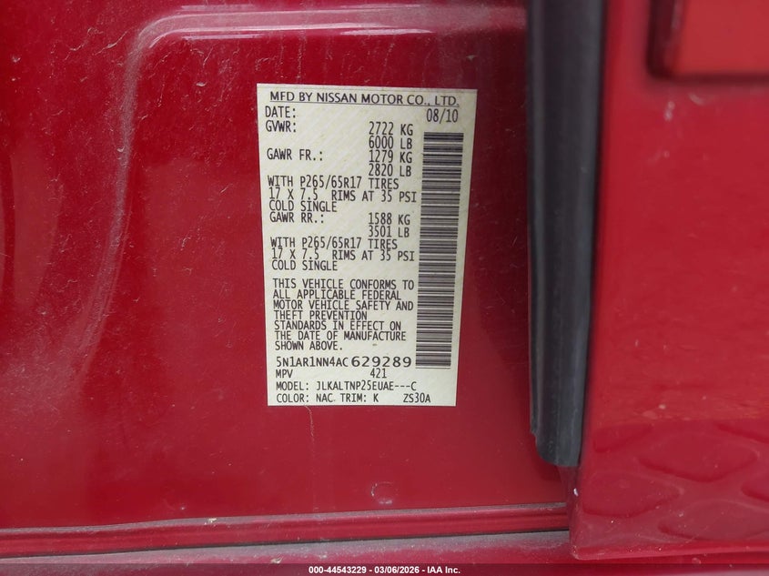VIN: 5N1AR1NN4AC629289