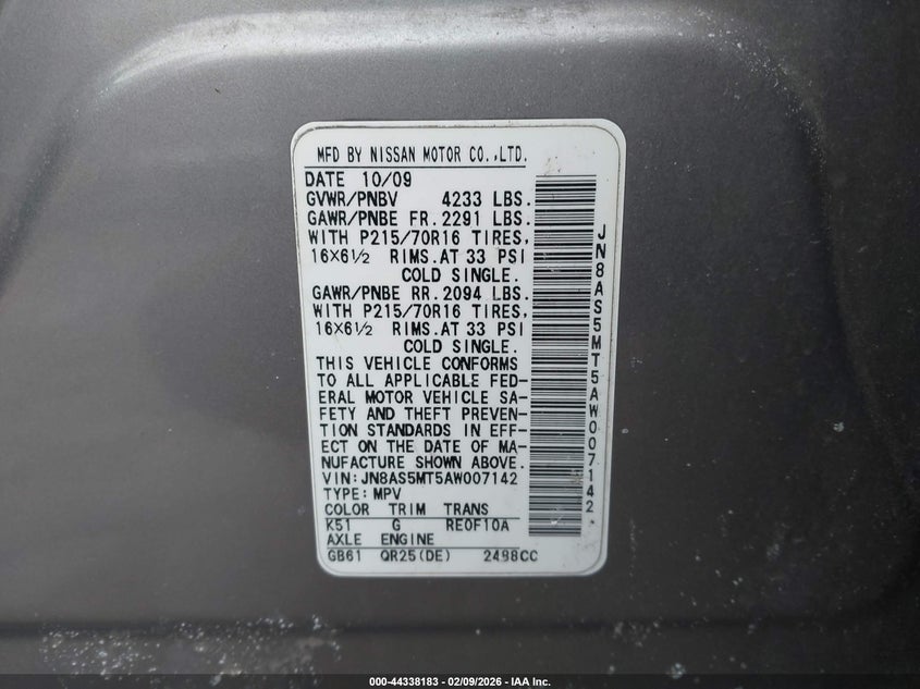 VIN: JN8AS5MT5AW007142