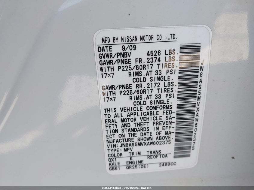 VIN: JN8AS5MVXAW602375