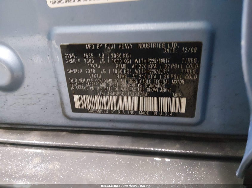 VIN: 4S4BRBCC1A3347641