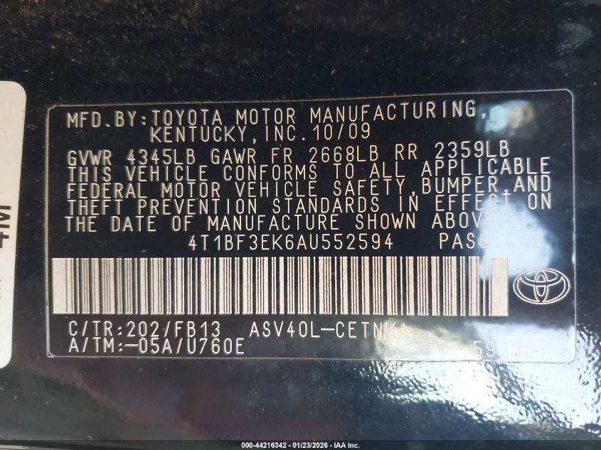 VIN: 4T1BF3EK6AU552594