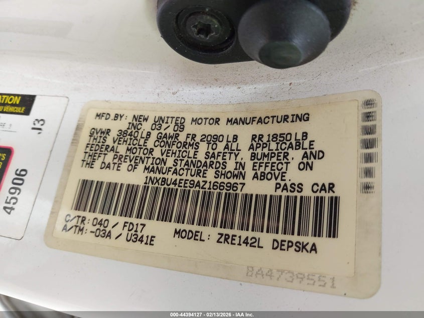 VIN: 1NXBU4EE9AZ166967
