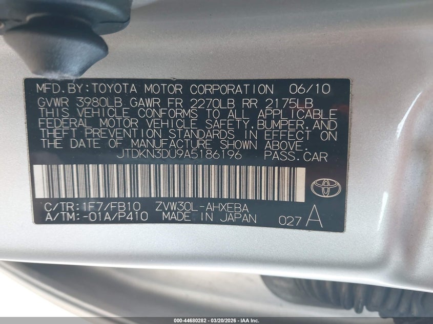 VIN: JTDKN3DU9A5186196