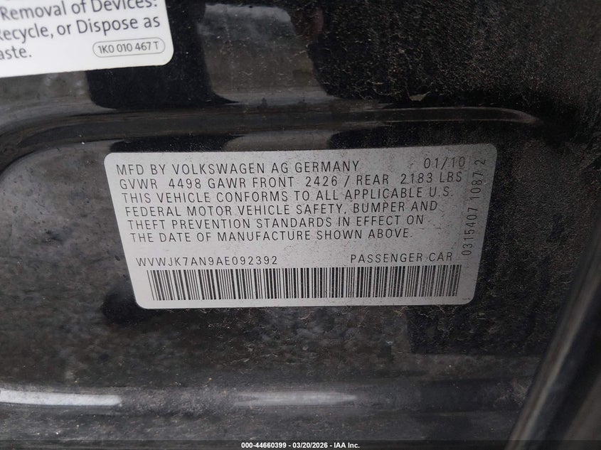 VIN: WVWJK7AN9AE092392
