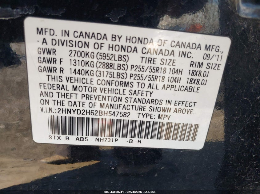 VIN: 2HNYD2H62BH547582