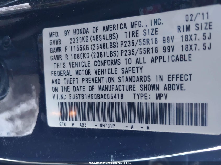 VIN: 5J8TB1H50BA005419