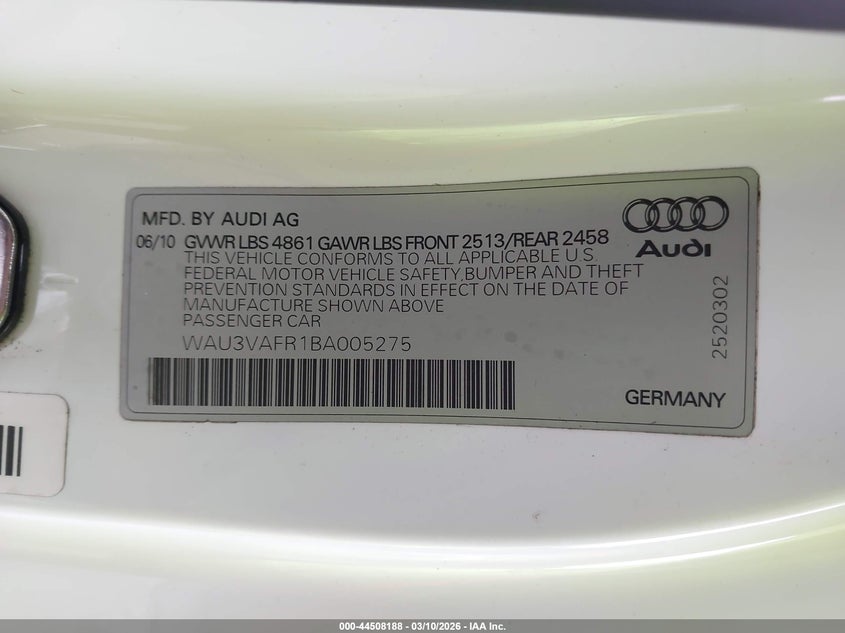 VIN: WAU3VAFR1BA005275