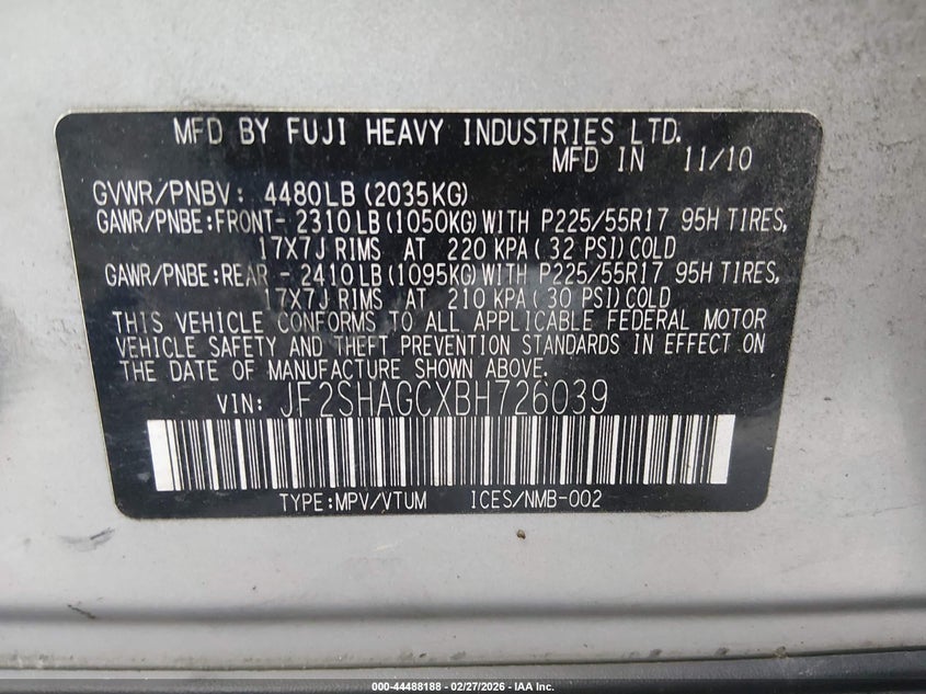 Variklio tipas:2.5L H-4 DOHC, VVT, 170HP