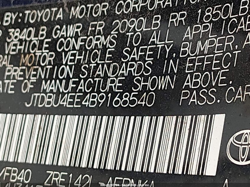 VIN: JTDBU4EE4B9168540