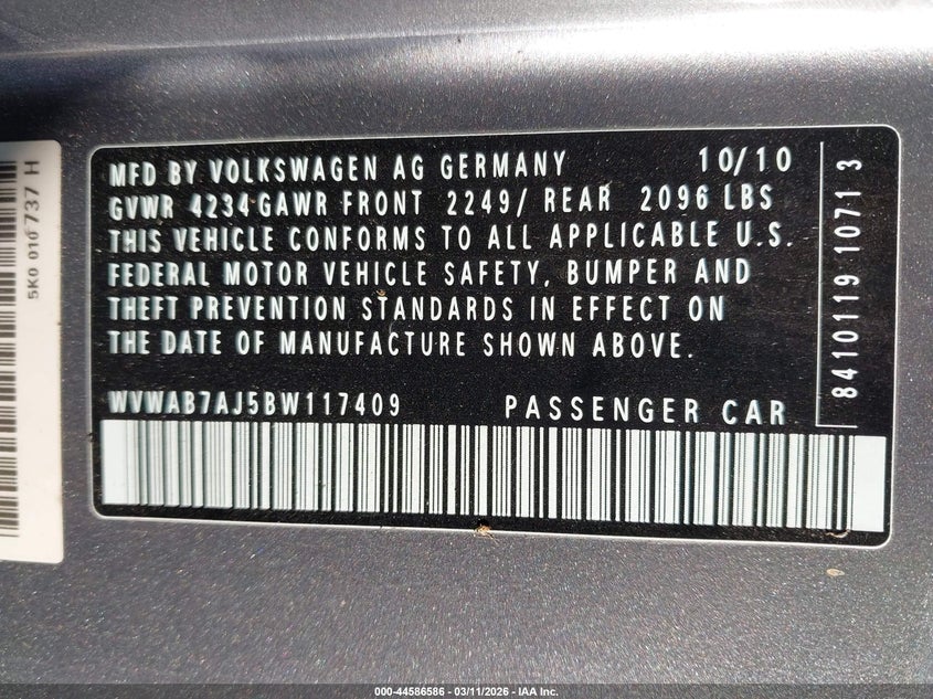 2011 VOLKSWAGEN GOLF 2.5L 2-DOOR