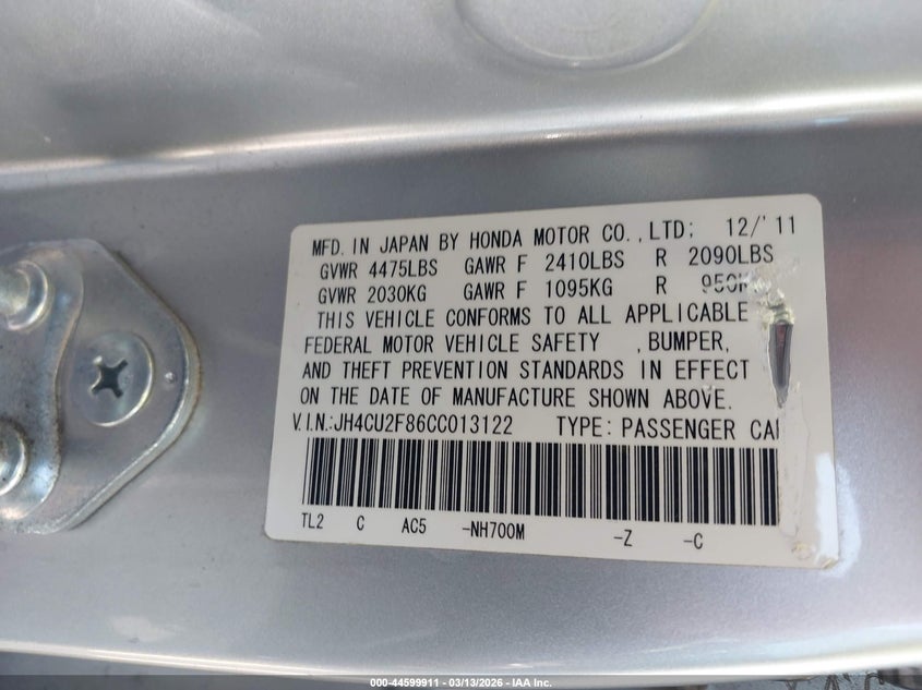 VIN: JH4CU2F86CC013122