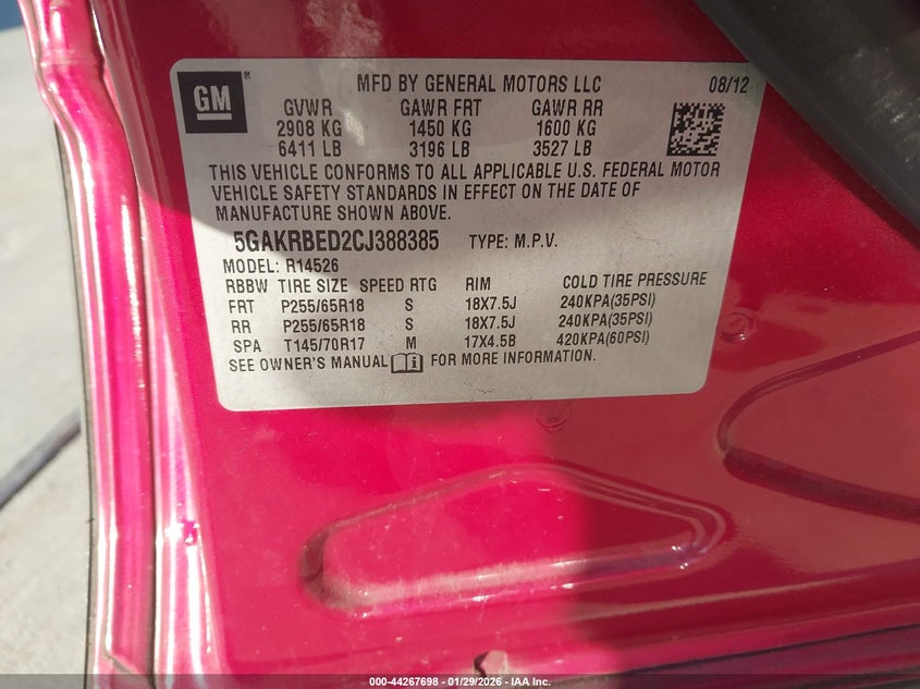VIN: 5GAKRBED2CJ388385