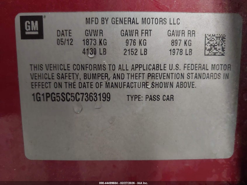 VIN: 1G1PG5SC5C7363199